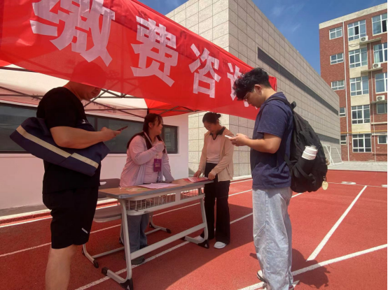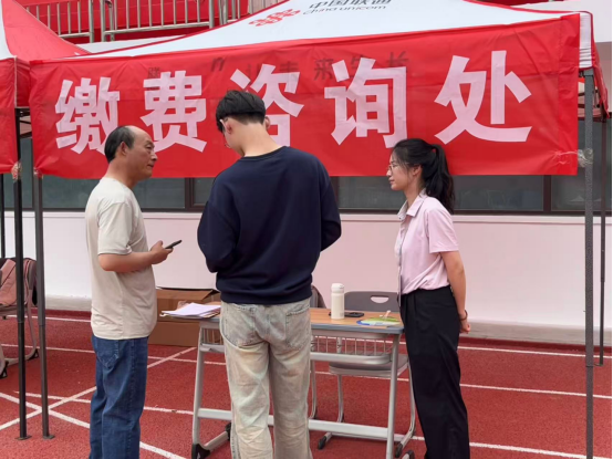 活动期间,财务处党员们在服务摊位前值守,耐心细致地为每一位前来咨询的新生及家长答疑解惑。服务内容涵盖缴费政策解读、缴费方式指导、疑难问题处理及反诈宣传。党员同志们用真诚的微笑、专业的知识和耐心的服务,有效缓解了新生初入校园的陌生感和焦虑感,赢得了新生及家长的广泛好评。